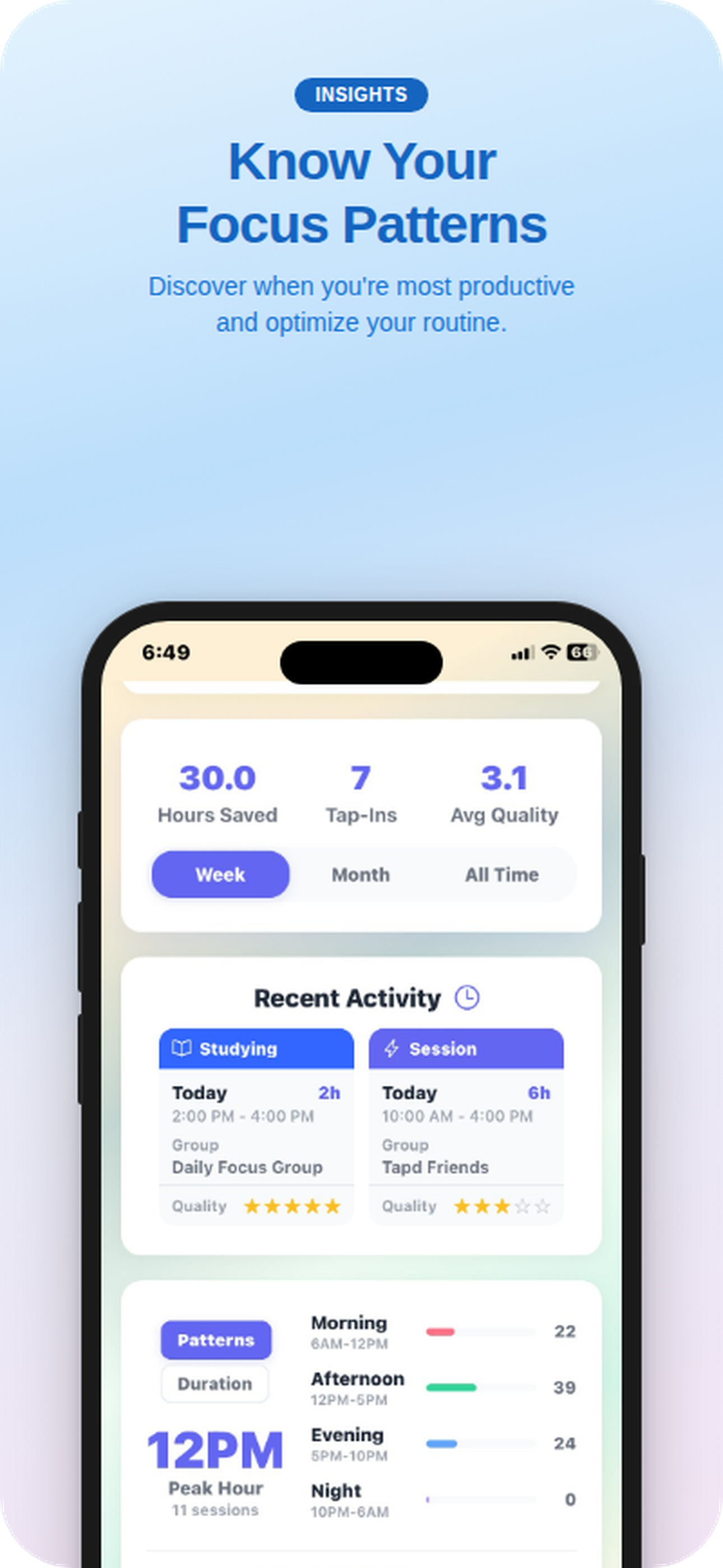 Watch how a physical NFC tap starts a focus session, blocks distractions, and shows your group you're locked in.